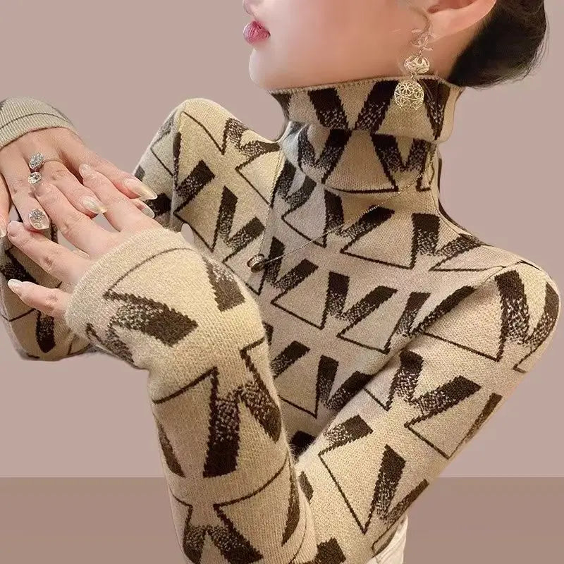 The Geometry Knitted Turtleneck Sweater is expertly designed for women aged 35-45 seeking a stylish yet comfortable option for autumn and winter. Featuring a slim fit and regular length, this sweater is crafted with a medium-weight knit blend of acetate and polyester, offering medium elasticity for ease of movement. The geometric pattern adds a contemporary edge while the full-length sleeves and classic turtleneck ensure warmth. Free of high-concern chemicals and closures, it provides a casual yet refined look that supports everyday wear with durability and comfort in cooler seasons.