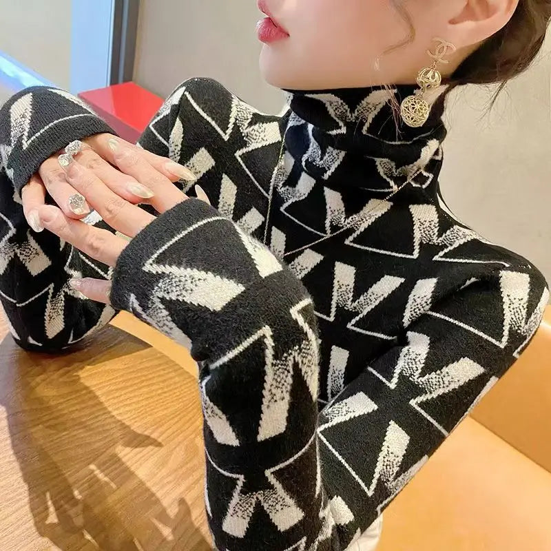 Geometry Knitted Turtleneck Sweater
