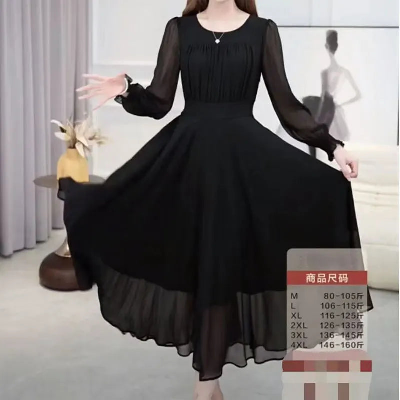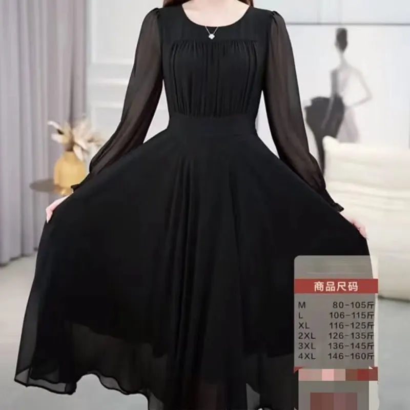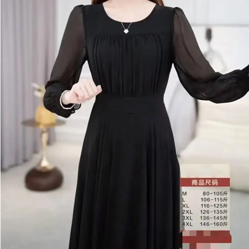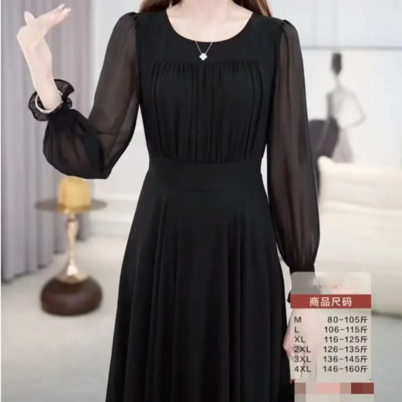 This Solid Black Midi Dress combines classic design with professional elegance, tailored specifically for a refined office look. Made from high-quality polyester, its non-stretch fabric ensures a smooth, structured silhouette in an A-line shape that flatters the figure naturally. Featuring full-length sleeves and a modest O-neckline, this dress offers comfort and sophistication suitable for spring and summer wear. The mid-calf length and regular fit enhance ease of movement, while the pullover closure and gentle folds add subtle detailing without compromising simplicity. Ideal for women seeking timeless style with practical functionality.